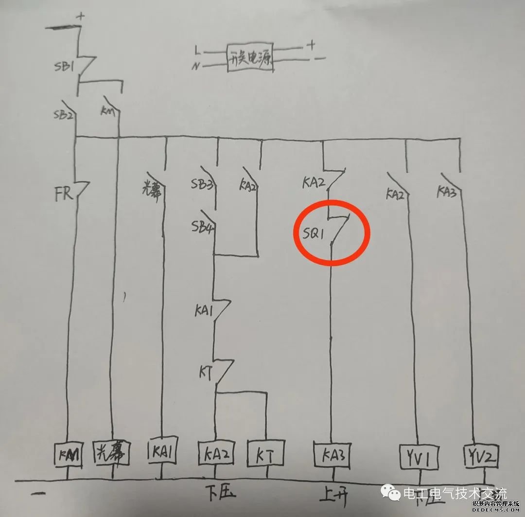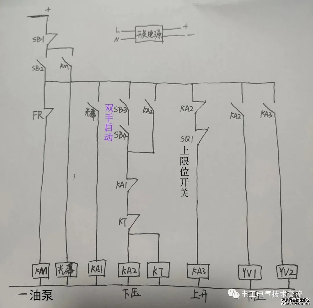 按下啟動(dòng)按鈕SB2,油泵工作后立即按下雙手按鈕油壓機(jī)下壓,松手后,液壓機(jī)正常。文章由電工小知識(shí)分享電友編著,版權(quán)歸原作者,向電友致敬!